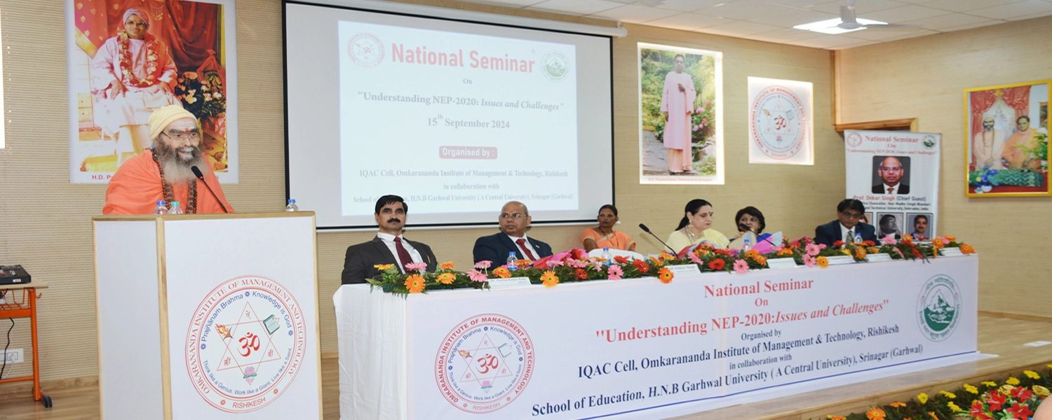 Omkarananda Institute of Management & Technology (OIMT), Rishikesh takes pride of being pioneer in the field of professional and technical education in the state of Uttarakhand. OIMT was founded in the year 1999 with the kind permission of HD Paramahamsa Swami Omkarananda Saraswati Ji Maharaj. OIMT started with MBA, BBA and BCA courses, striving upon providing value-based quality education to the students of Uttarakhand and other states of the country since its inception. OIMT being one of the oldest institutions of professional and higher education in the state, presently runs MBA, BBA, MSc (Computer Science), BSc (IT), BCA, B.Com, B.Com (Hons.), Master/ Bachelor in Library and Information Science – M.Lib. & B.Lib., Bachelor of Education (B.Ed.), Bachelor`s in Journalism and Mass Communication (BJMC), Master of Arts in Mass Communication – M.A. (Mass Comm.) & Diploma in Yoga.